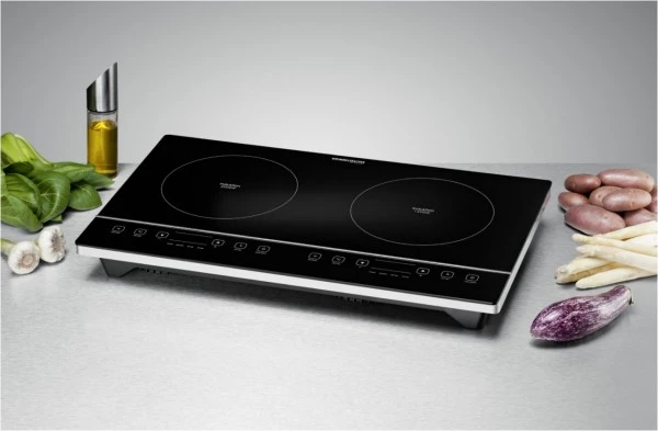 Modern und effizient kochen mit Induktion! Der hohe Wirkungsgrad dieser Technologie spart Energie, Zeit und Geld. Die Hitze wird direkt im Topfboden erzeugt, dadurch steht sie so schnell zur Verfügung wie bei einem Gasherd, nur erheblich sicherer. Die Kochfläche selbst nimmt nur die Abwärme des Topfes auf. Ob als Ergänzung zum bestehenden Herd oder als mobile Kochstelle für Single-Appartement, Ferienhaus oder Büro – Induktionskochtafeln sind überall schnell und flexibel einsetzbar. Die Regelung erfolgt je nach Bedarf über eine 10-Stufen Leistungswahl oder über eine Temperaturvorwahl (60 °C bis 240 °C.). Für hohen Benutzerkomfort stehen die Bedienung über Touch Control Sensoren, LED Anzeigen und die 180 Minuten Zeitschaltuhr. Eine automatische Abschaltung mit Signalton und die Restwärmeanzeige gewährleisten zusätzliche Sicherheit beim Betrieb. Es gibt viele gute Gründe, sich für eine ROMMELSBACHER Kochtafel mit Induktion zu entscheiden!