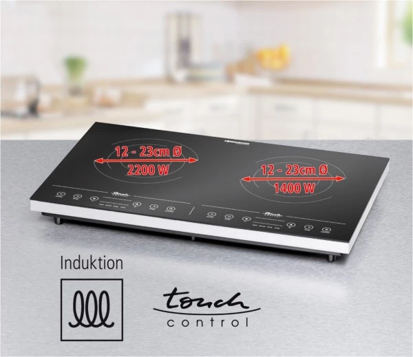 Induktion ist die moderne Art zu kochen. Ein elektromagnetisches Feld erhitzt nicht erst das Kochfeld, sondern gleich den Topfboden. Die Temperatur steht so schnell zur Verfügung wie bei einem Gasherd, nur erheblich sicherer. Durch den hohen Wirkungsgrad spart man Energie, Zeit und Geld. Perfekt als Ergänzung zum bestehenden Herd oder als mobile Kochstelle für Single-Appartement, Ferienhaus oder Büro. Die Induktionskochtafeln bieten eine Leistungswahl in 10 Stufen und eine Temperaturvorwahl von 60 °C bis 240 °C. Für hohen Benutzerkomfort stehen die Regelung über Touch Control, die LED Anzeige und die 180 Minuten Zeitschaltuhr. Die rahmenlose Glaskeramik-Kochfläche ist ohne Zwischenstege und somit sehr reinigungsfreundlich. Eine automatische Abschaltung mit Signalton und die Restwärmeanzeige gewährleisten zudem viel Sicherheit beim Betrieb.