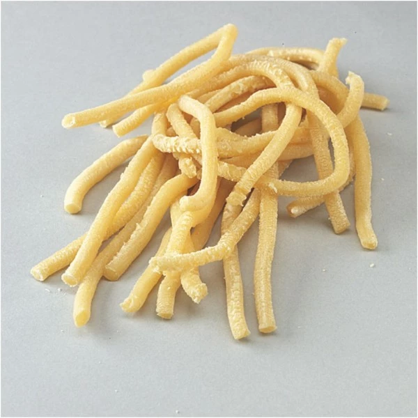 Bigoli sind längliche, dicke Röhrennudeln die traditionellerweise mit Buchweizen und Enteneiern zubereitet werden. Egal, ob Sie das traditionelle Rezept oder die moderne Interpretation mit Weizenmehl und Hühnereiern verfolgen, die Bigoli werden Ihnen mit dem Bronze-Teigwareneinsatz perfekt gelingen.
