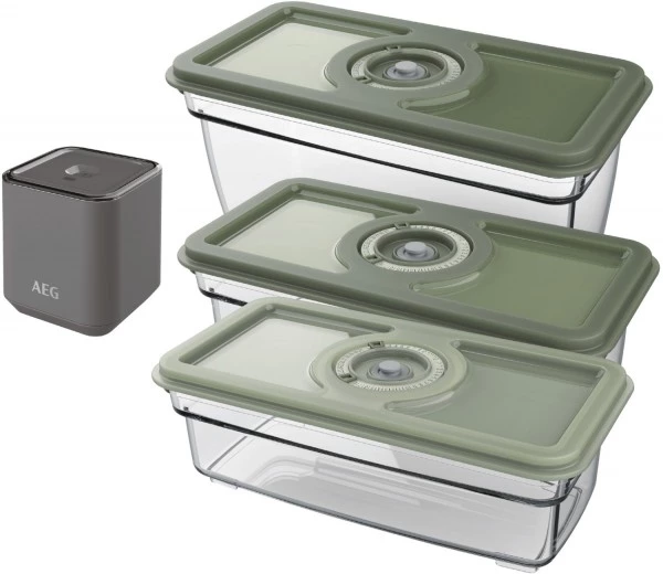 Sicheres und schützendes Aufbewahrungssystem für frische Lebensmittel und Essensreste – für Ordnung in Küche und Kühlschrank. Mit integrierter Datumseinstellung, um die Lebensdauer von Lebensmitteln im Blick zu behalten. Durch leichte Bewegung des Silikon-Knopfes auf dem Deckel des Lebensmittelbehälters können Sie das Vakuum lösen und den Behälter einfach öffnen.