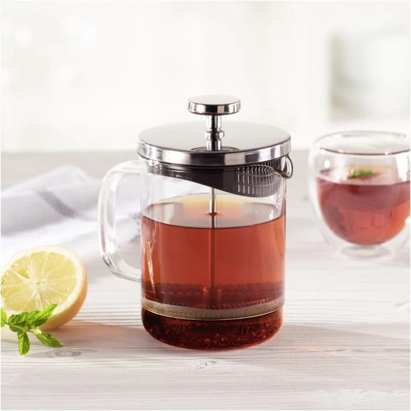 Mit heißem Wasser aufgießen, ziehen lassen und dann einfach Pulver/Blätter mit dem Pressfilter rückstandslos nach unten drücken.