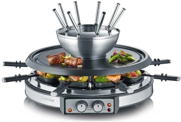 Praktische 2-in-1-Kombination aus Raclette und Fondue. Vielfältiges Grillvernügen für 8 Personen mit nur einem Gerät.
