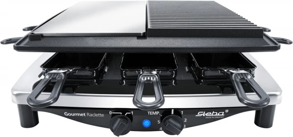 Die in Deutschland gefertigte Raclettes Serie zählt zu den hochwertigsten Raclettes Europas, dazu zählt natürlich auch das RC 8 Steel Deluxe von Steba. Das leistungsfähige und stufenlos regulierbare Heizsystem erreicht nach kürzester Zeit hohe Grilltemperaturen. Auf einer Grillfläche von 29 x 29cm haben Sie genügend Platz um angenehm mit 6-8 Personen gleichzeigt zu grillen.