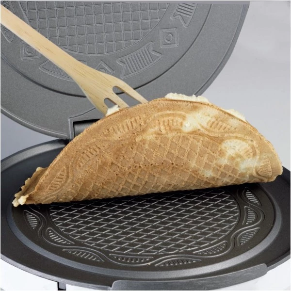 Der Ursprung des Hörnchen-Backens liegt in Norddeutschland, wo es auch heute noch am weitesten verbreitet ist. Am bekanntesten sind die Hörnchen als „Neujahrskuchen“, häufig gefüllt mit Obst oder Sahne. Das Geheimnis für das Gelingen dieses Gebäcks ist ein sehr schonender Backvorgang. Mit einer Leistung von nur 800 Watt gelingen Ihre Hörnchen in diesem Hörnchenautomat am besten. Modernes Design für ein traditionelles Gebäck. Hauchdünne, knusprige Hörnchen. Einfache Reinigung durch innenliegendes Scharnier und Fettauffangrille. Optische Fertigmeldung. Platzsparende, auf den Griffen stehende Aufbewahrung. Kabelaufwicklung mit Steckerdepot. Backfläche 15 cm Ø.